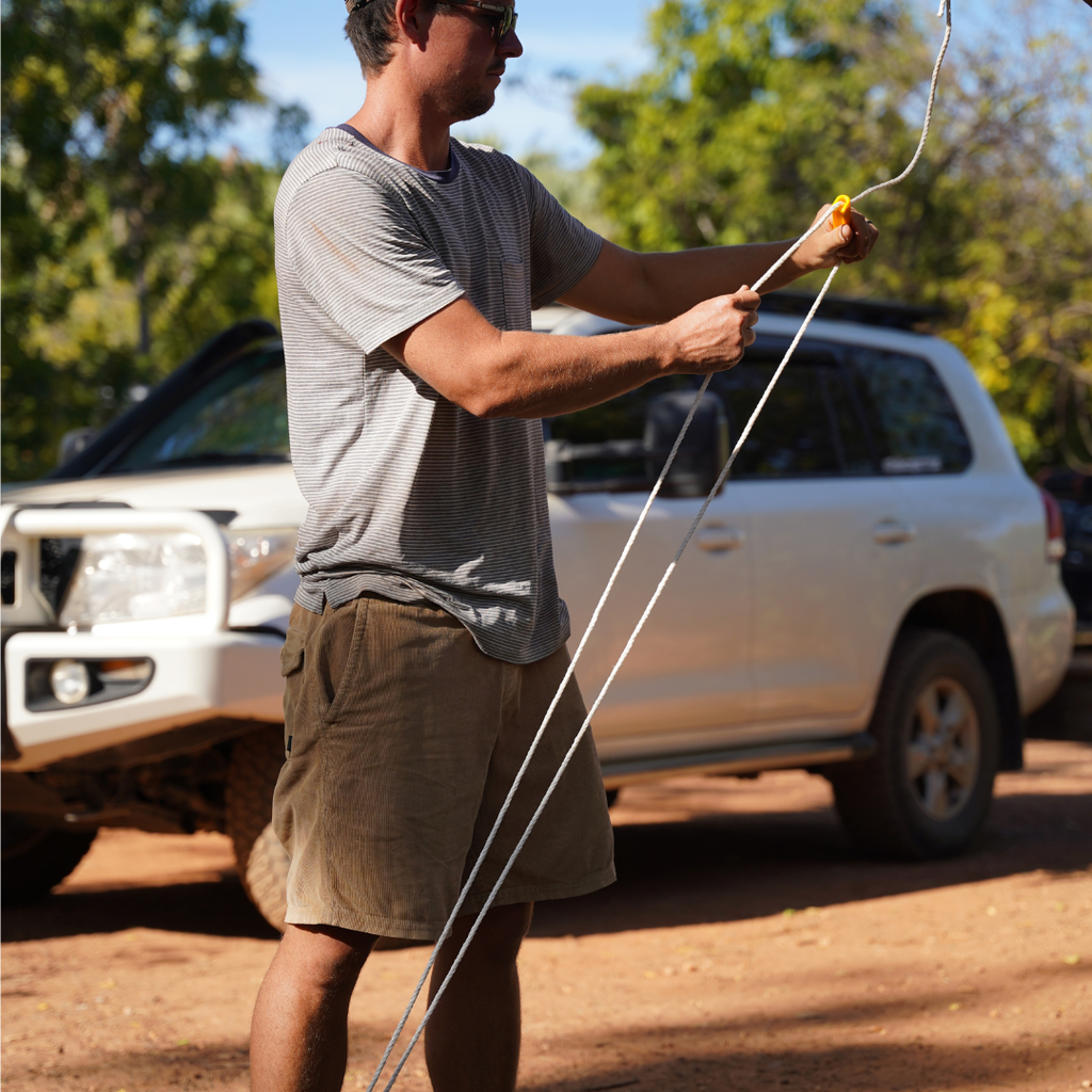 An ideal basic awning set up rope clip pack designed to improve awning stability in windy conditions.