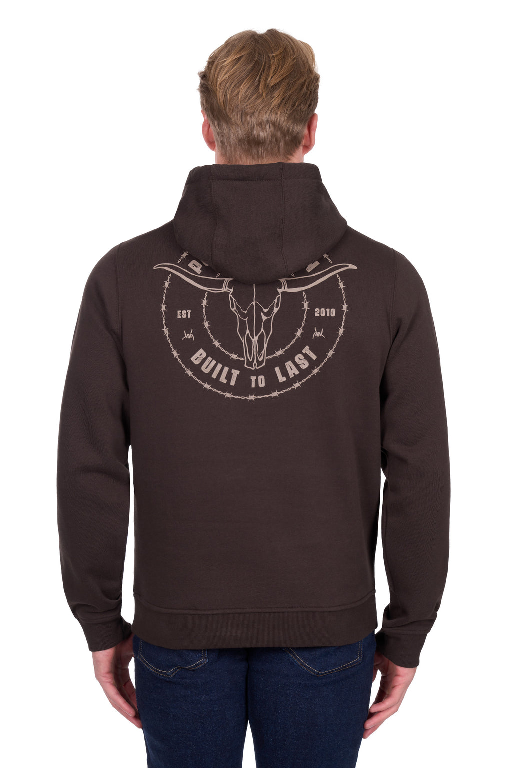 Heavyweight brushed fleece hoodie with steerhead print