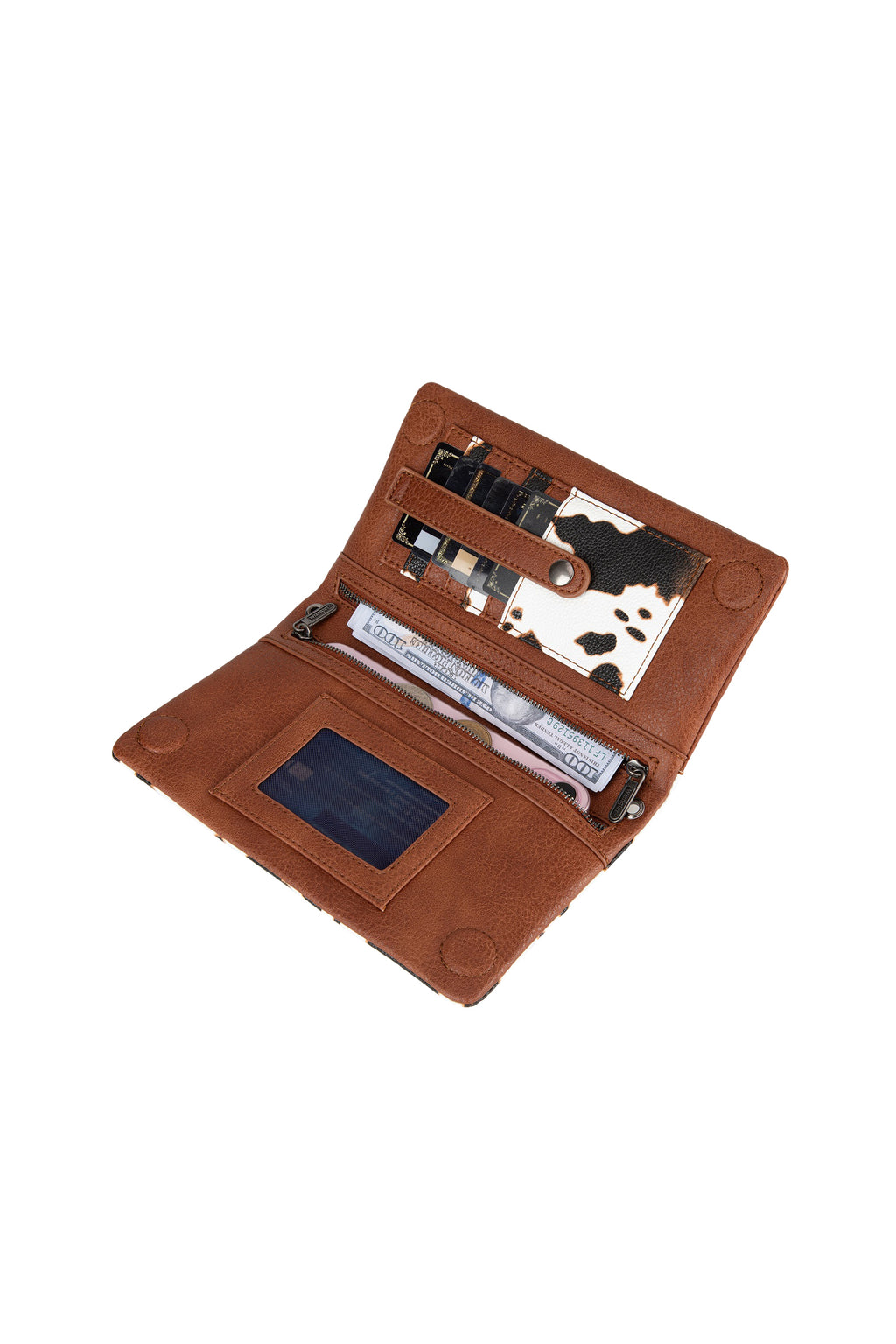 - Versatile 3-in-1 design: crossbody, wristlet or wallet